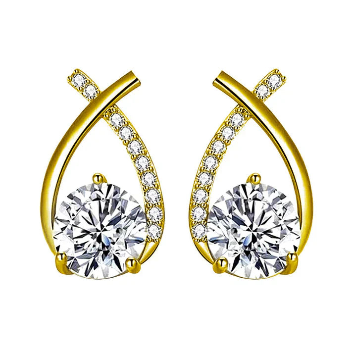 Die Ohrringe Arielle | Gold vereinen fließende Linien mit funkelnder Eleganz. Die sanft geschwungene Form umrahmt den zentralen Stein auf harmonische Weise und verleiht dem Design eine leichte, ausdrucksstarke Anmutung.